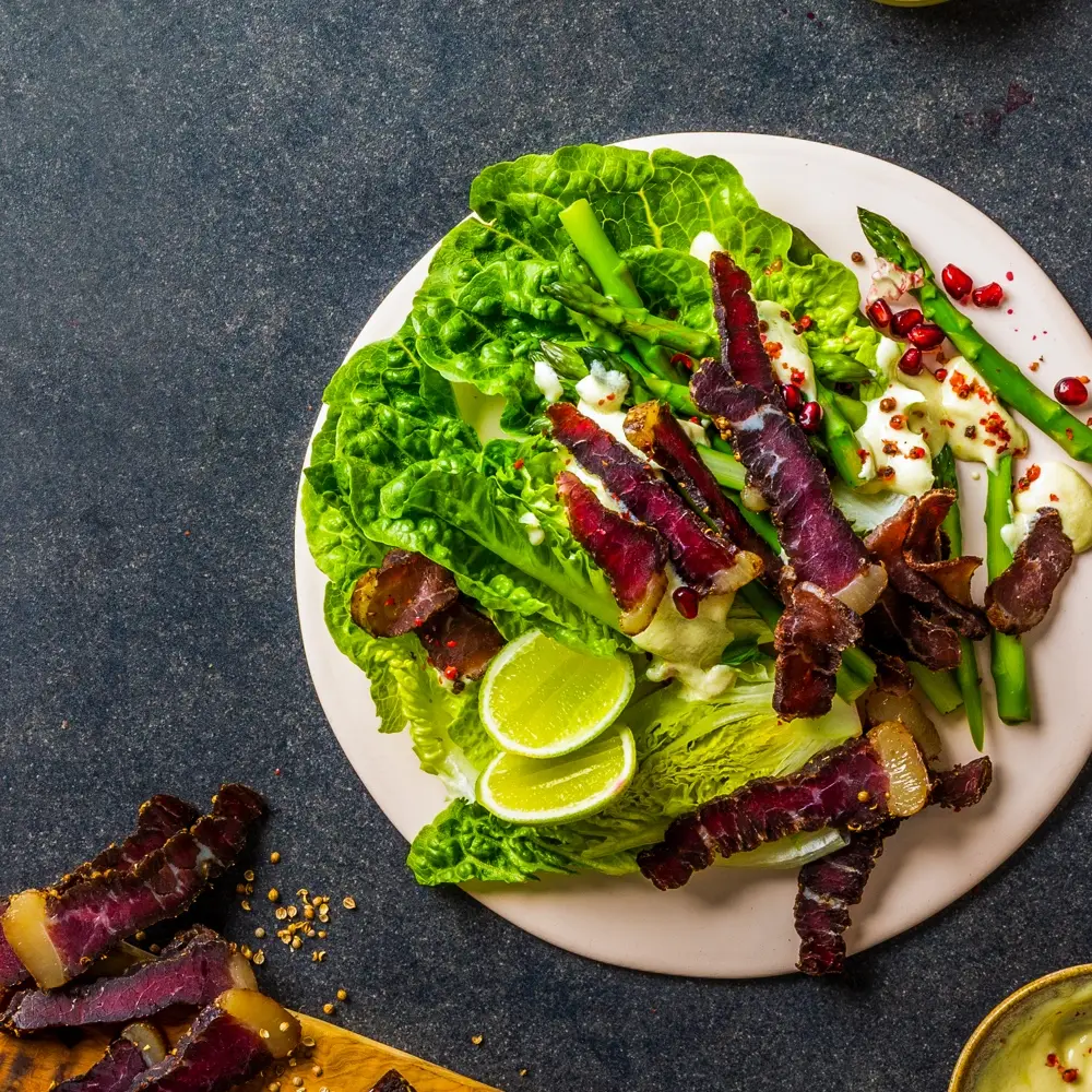 Asparagus, Biltong and Pomegranate Salad with Lime Mayo